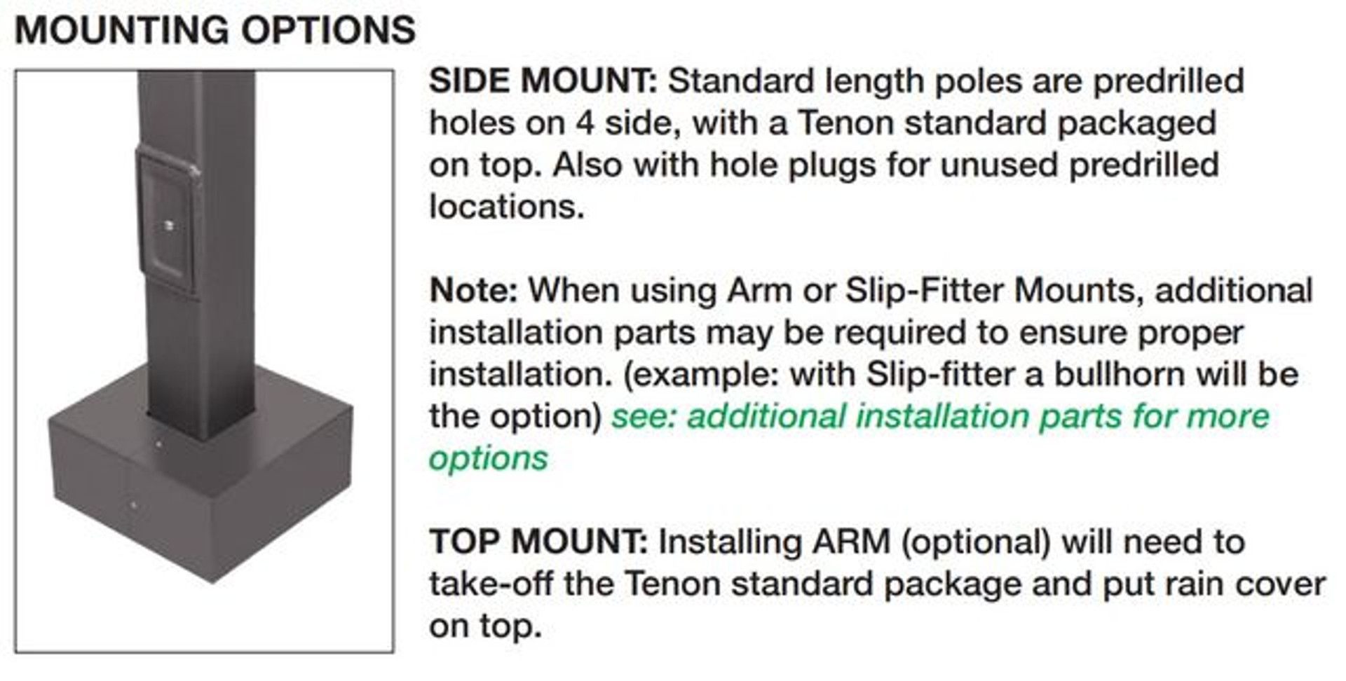 10 Foot Square Pole For Surface Mount - Steel With Bronze Finish - 4 Inch Diameter With 2.5 Inch Tenon Adapter