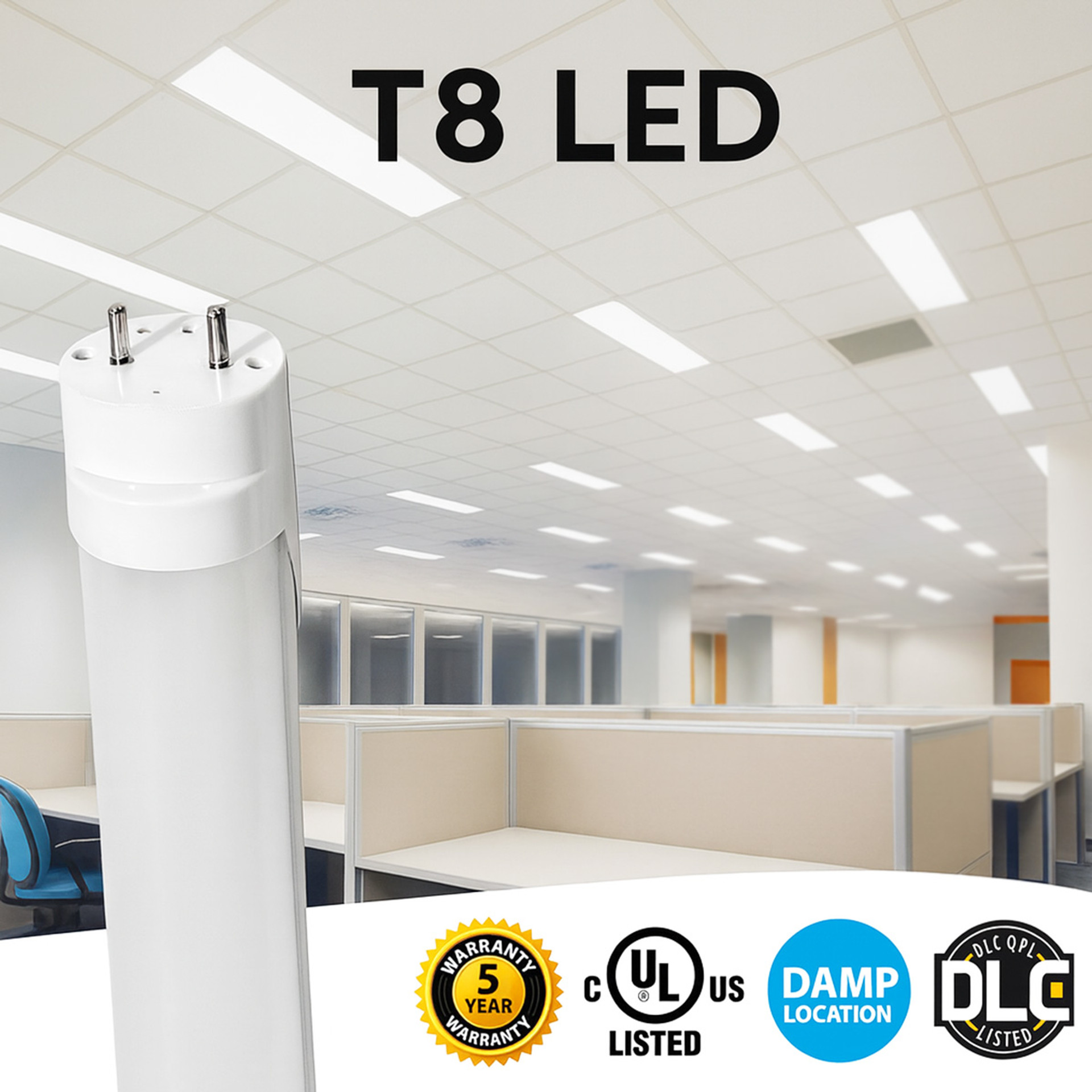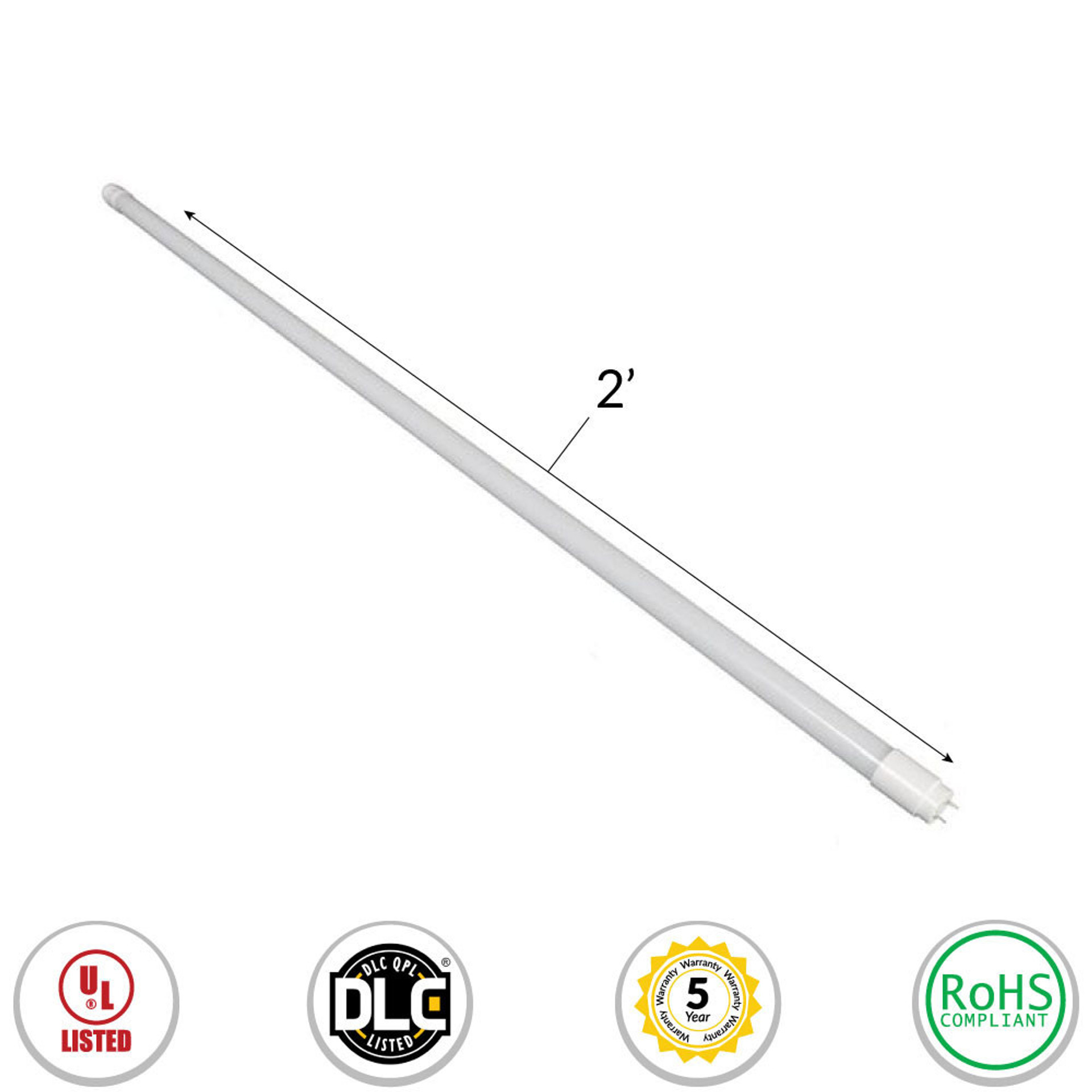 LED T8 Universal Retrofit Bulb - 2 Foot - 8 Watt - 1000 Lumens - 3500K Neutral White - Electronic T8 Ballast Compatible & Bypass Ballast