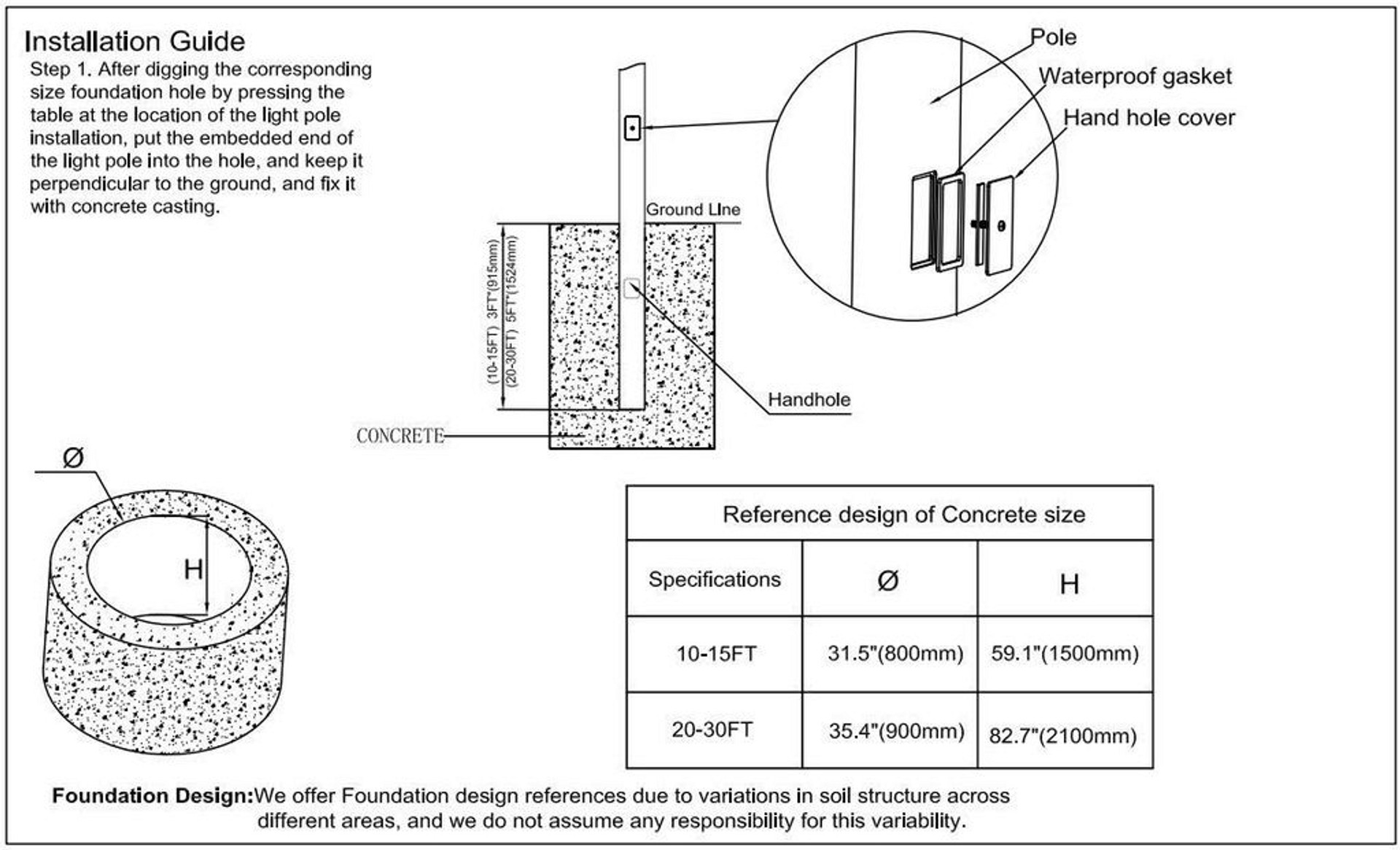 20 Foot Round Pole For Direct Burial - Steel With Bronze Finish - 4 Inch Diameter