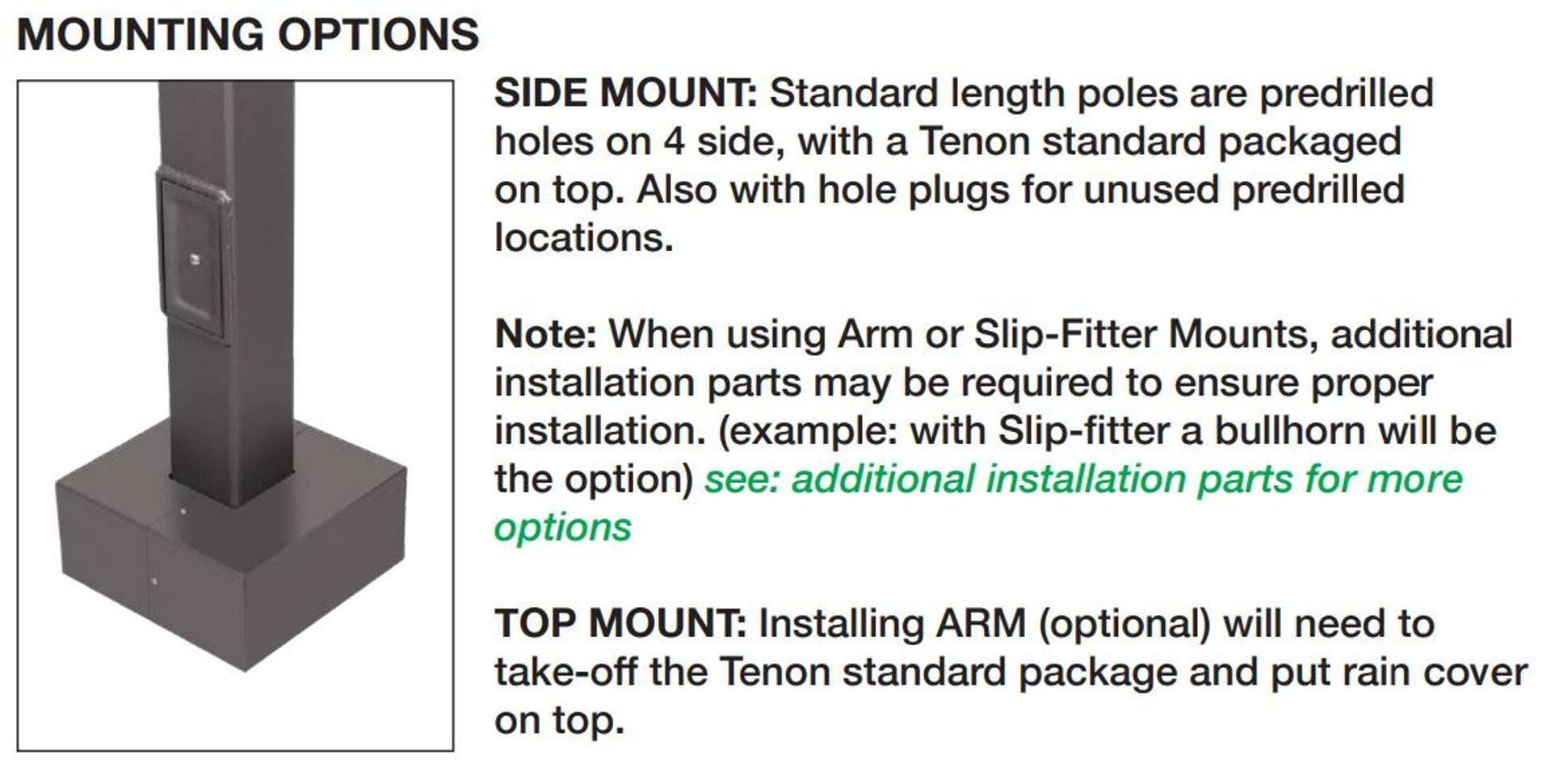 30 Foot Square Pole For Surface Mount - Steel With Bronze Finish - 5 Inch Diameter With 2.5 Inch Tenon Adapter