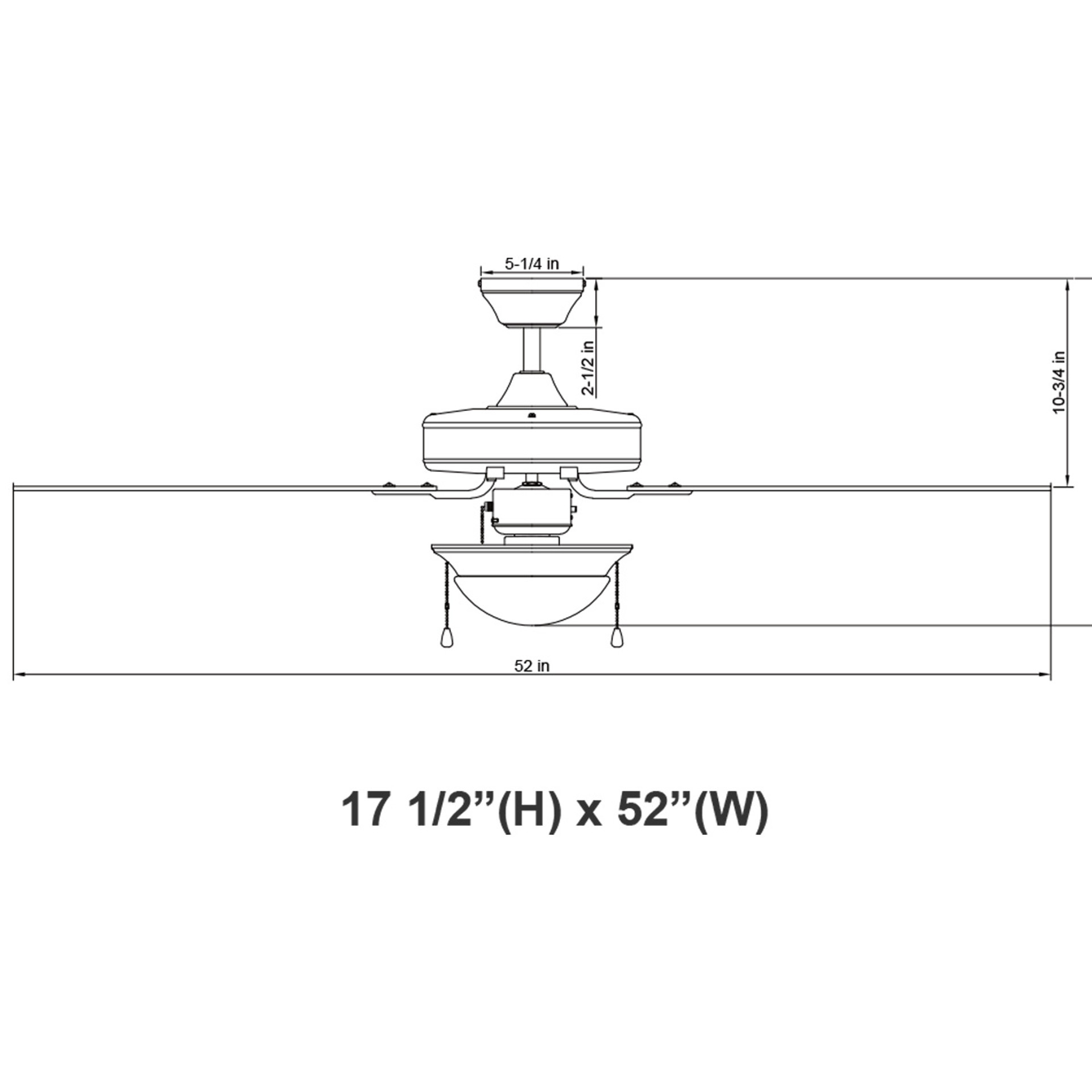 52 Inch White Finish MDF 5-Blade Ceiling Fan & Light - 120V - 9W A19 x2 - 3000K Soft White - With Pull Chain Switch