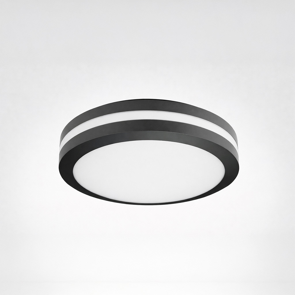 Black Round LED Bulkhead Light - Ceiling or Wall Mount - Outdoor Wet Location UL Listed - 14 Watt - 1350 Lumens - 3000K