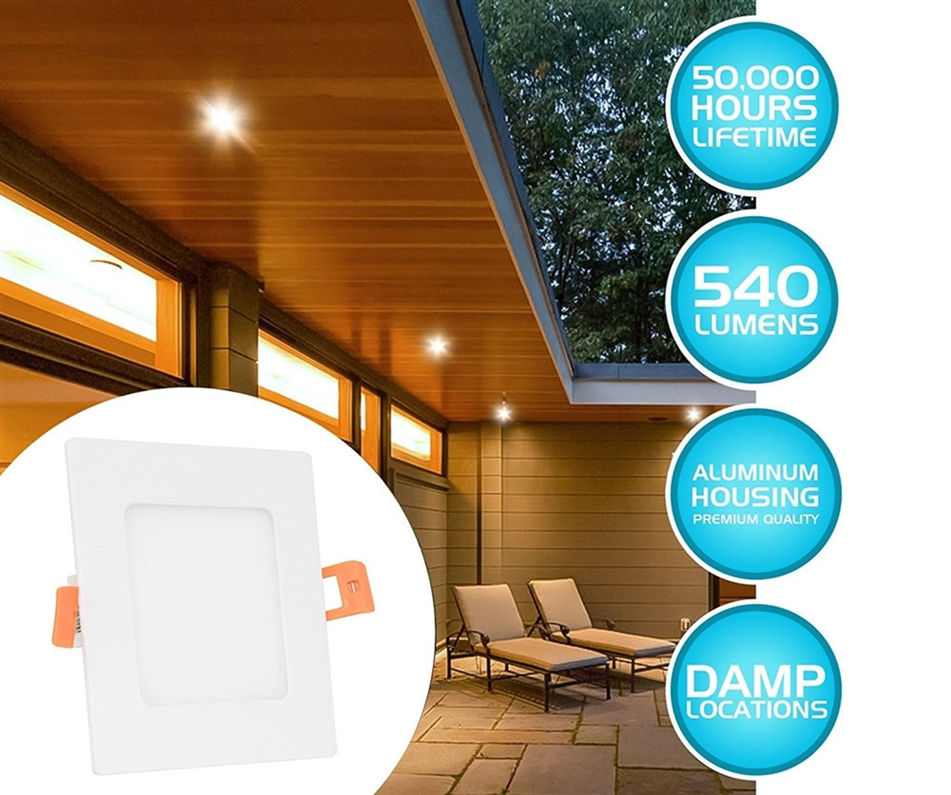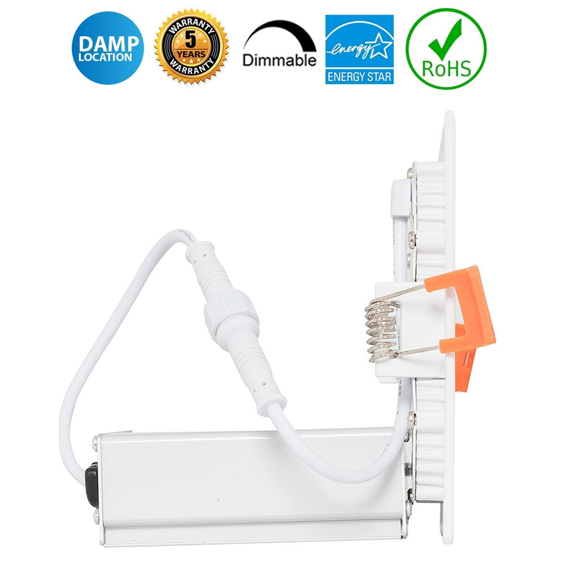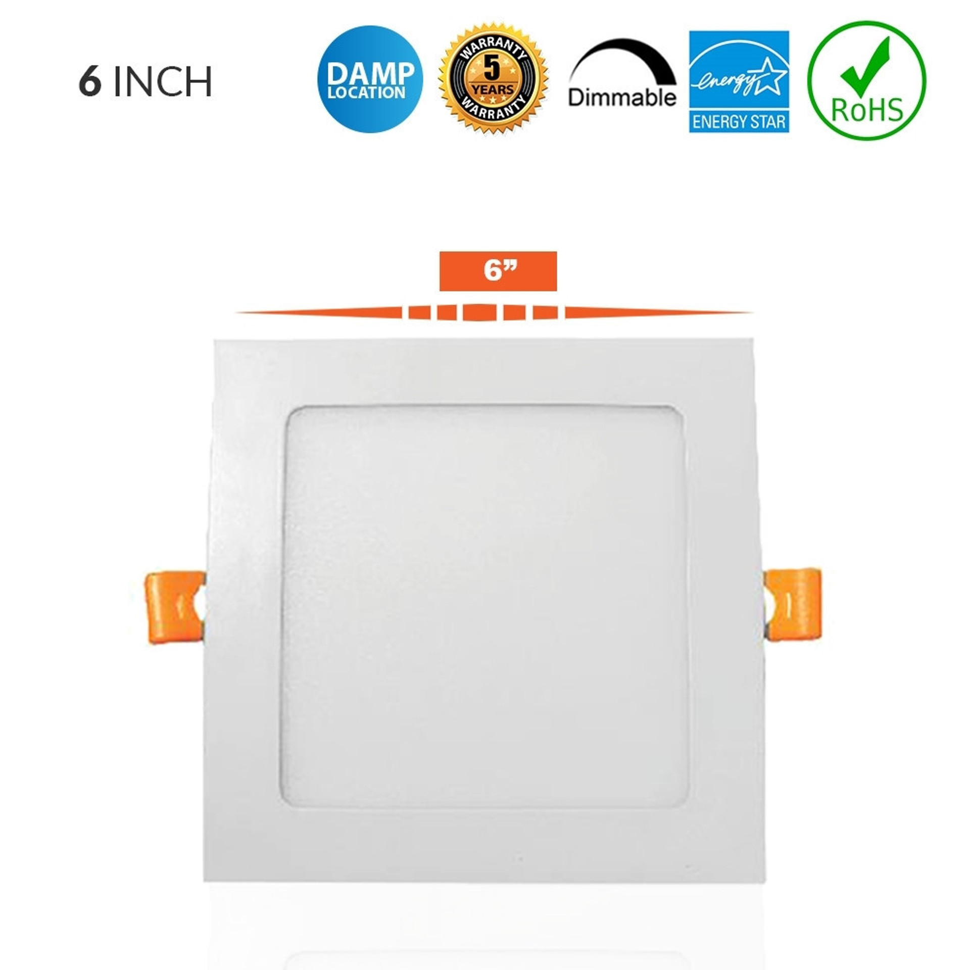 6 Inch Square Edge Lit Recessed LED Downlight - 15 Watt- 900 Lumens - Color Selectable 27K/30K/35K/40K/50K - 120V - Dimmable - Recessed Can Not Required