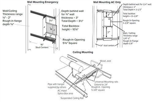 Dual Lite CLML-XK Compact Concealed LED Recessed Emergency Light, NiMH Battery, Less Rough-In Kit