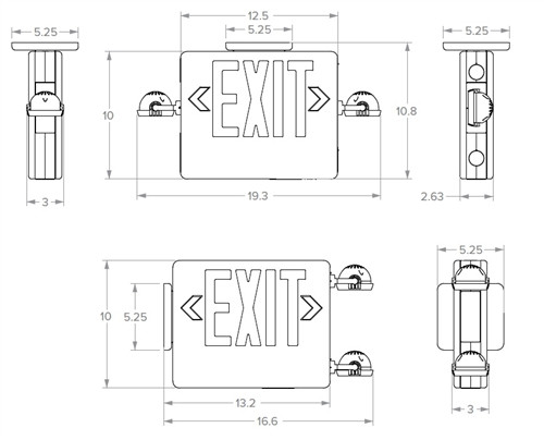 Dual Lite EVCHL-U-R-W-12 12W High Lumen Combination Exit/ Emergency Light, Universal Single/ Double Face, Red Letter, White Finish
