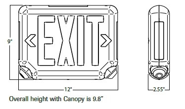 Dual-Lite EVCUGW Architectural LED Exit and Emergency Light, Universal Face, Green Letters, White Finish, Standard Model, No Self-Diagnostics