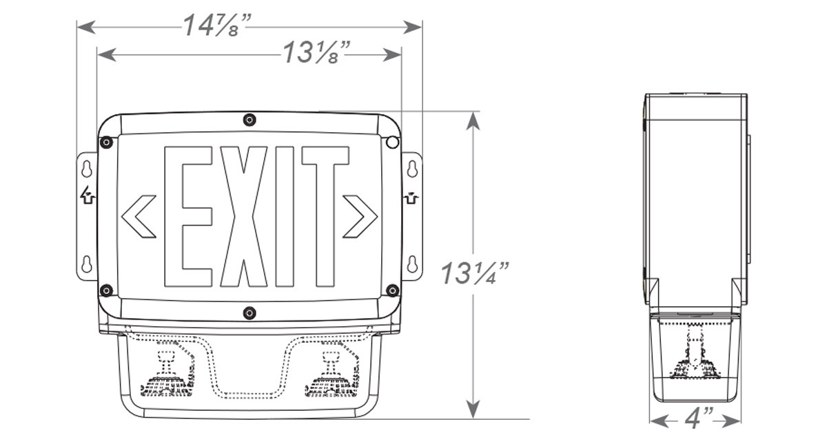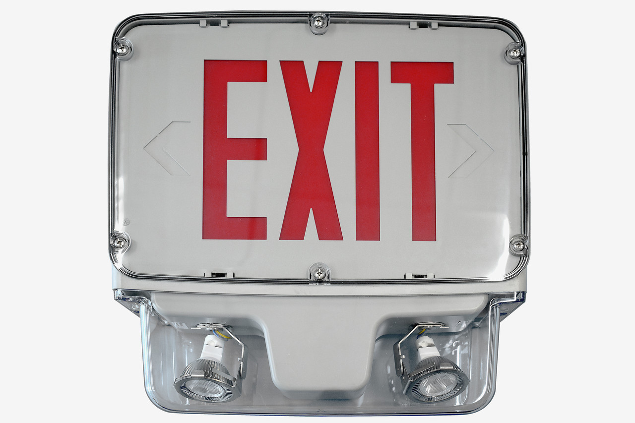 Hazardous Location LED Combo Exit Sign And Emergency Light - Choose Red or Green Lettering, 1 Or 2 Sided - With 90 Minute Battery Back-Up