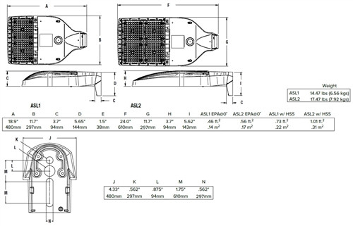 Hubbell Outdoor Lighting ASL1-80L-50-4K7-3-UNV-A-DBT 50W Airo Micro Strike, 80 LEDs, 40K , 70 CRI, 120-277V 6360 LM, Arm Mounting, Bronze Matte Textured