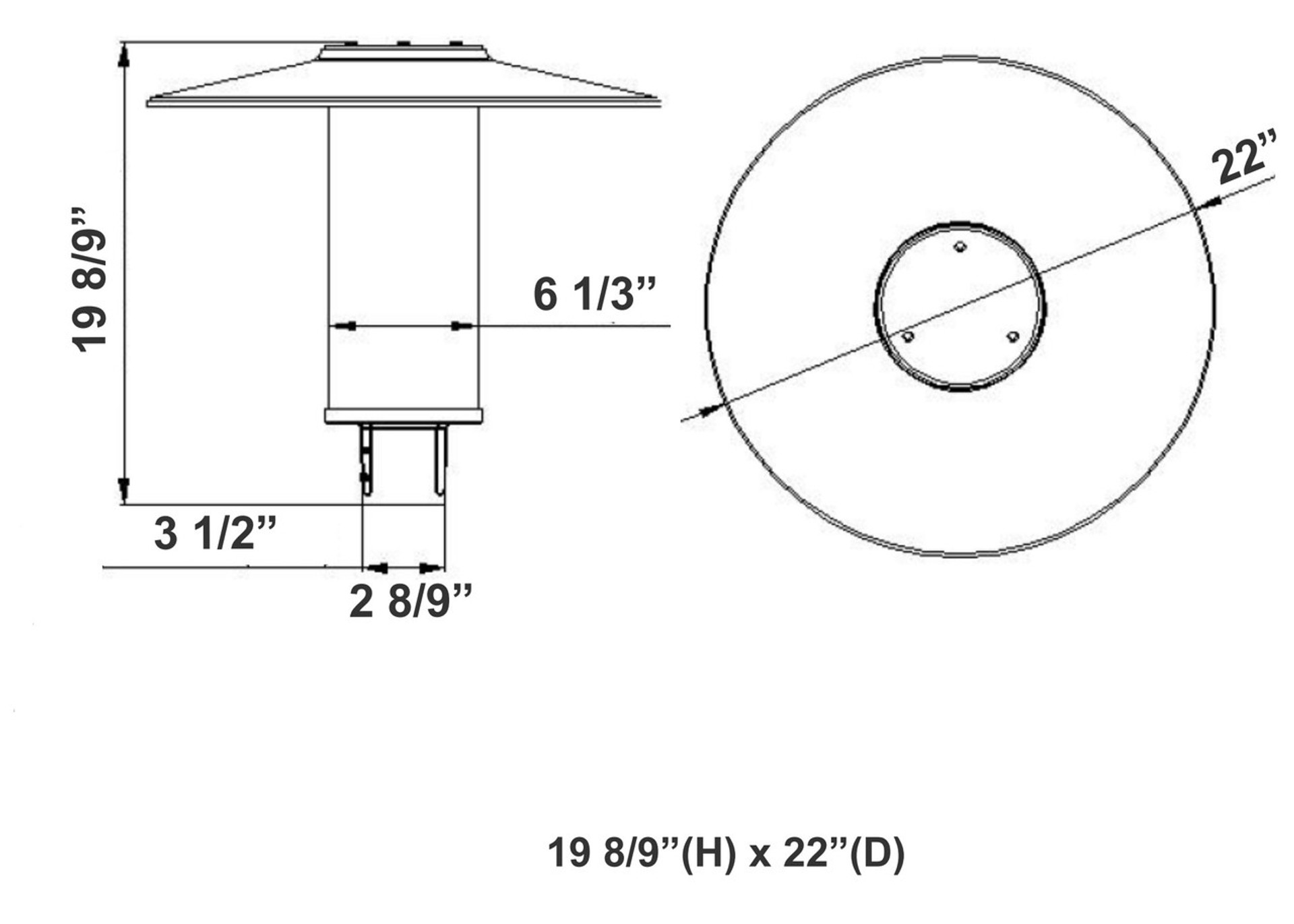 Indirect LED Post Light - Watt Selectable 40W/30W/20W/12W - Color Selectable 30K/40K/50K - 120-277V - 0-10V Dimmable - Black Finish