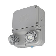 Industrial LED Exit and Emergency, 2 Lamp Heads, Wall Mount, 120/277V 6W, Gray Housing, Lithium Iron Phosphate Battery, UL 924, NEMA 4, 4X, UL Sanitation, UL 844, IP66