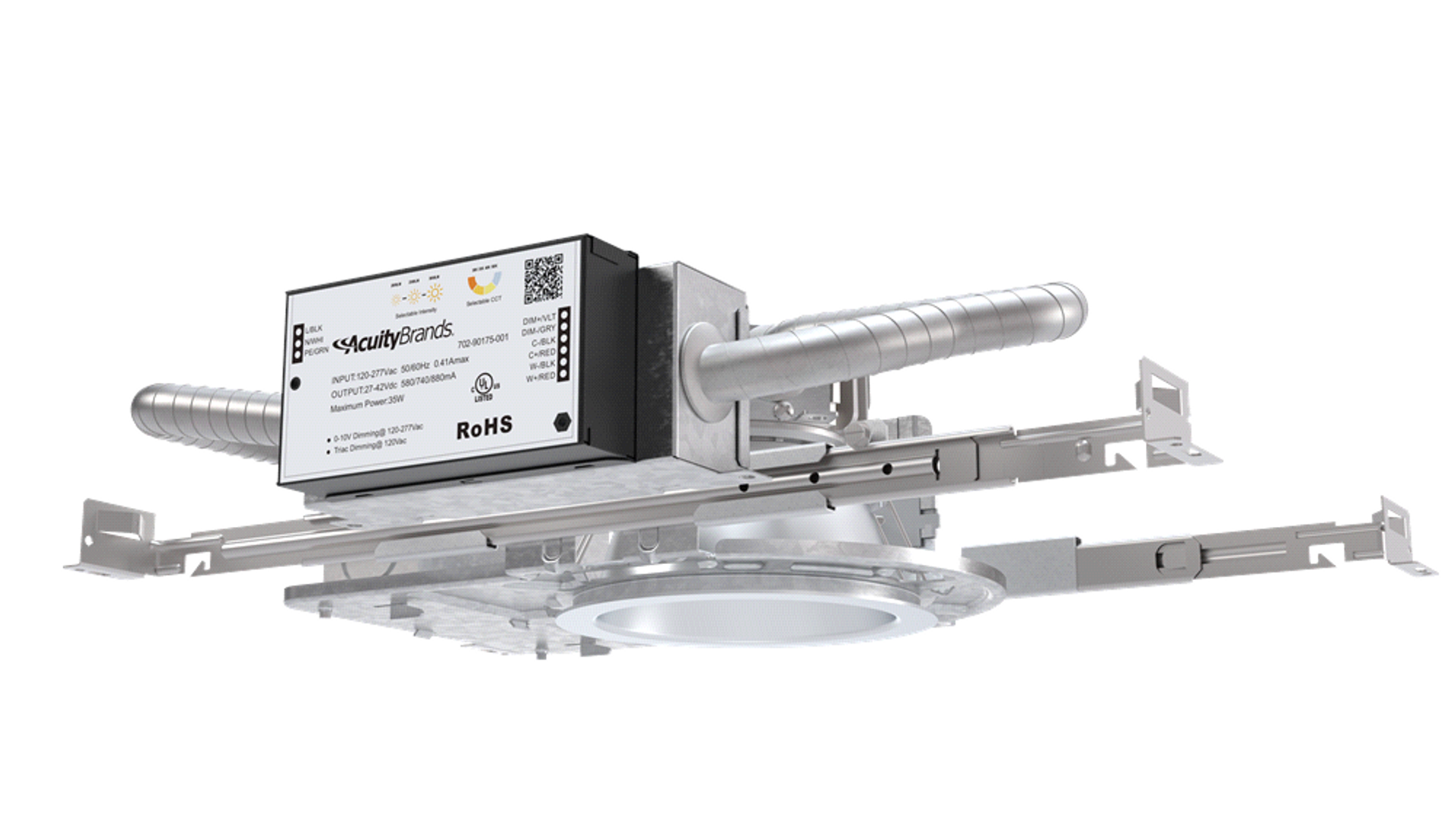 LBR 4IN Round New Construction Housing, Switchable lumens, Switchable CCT, Semi-Specular Chrome Trim, Medium Wide Light Distribution, Multi-Volt, Dimming 0-10V - Model LBR4 NCH ALO2 SWW1 AR LSS MWD MVOLT UGZ