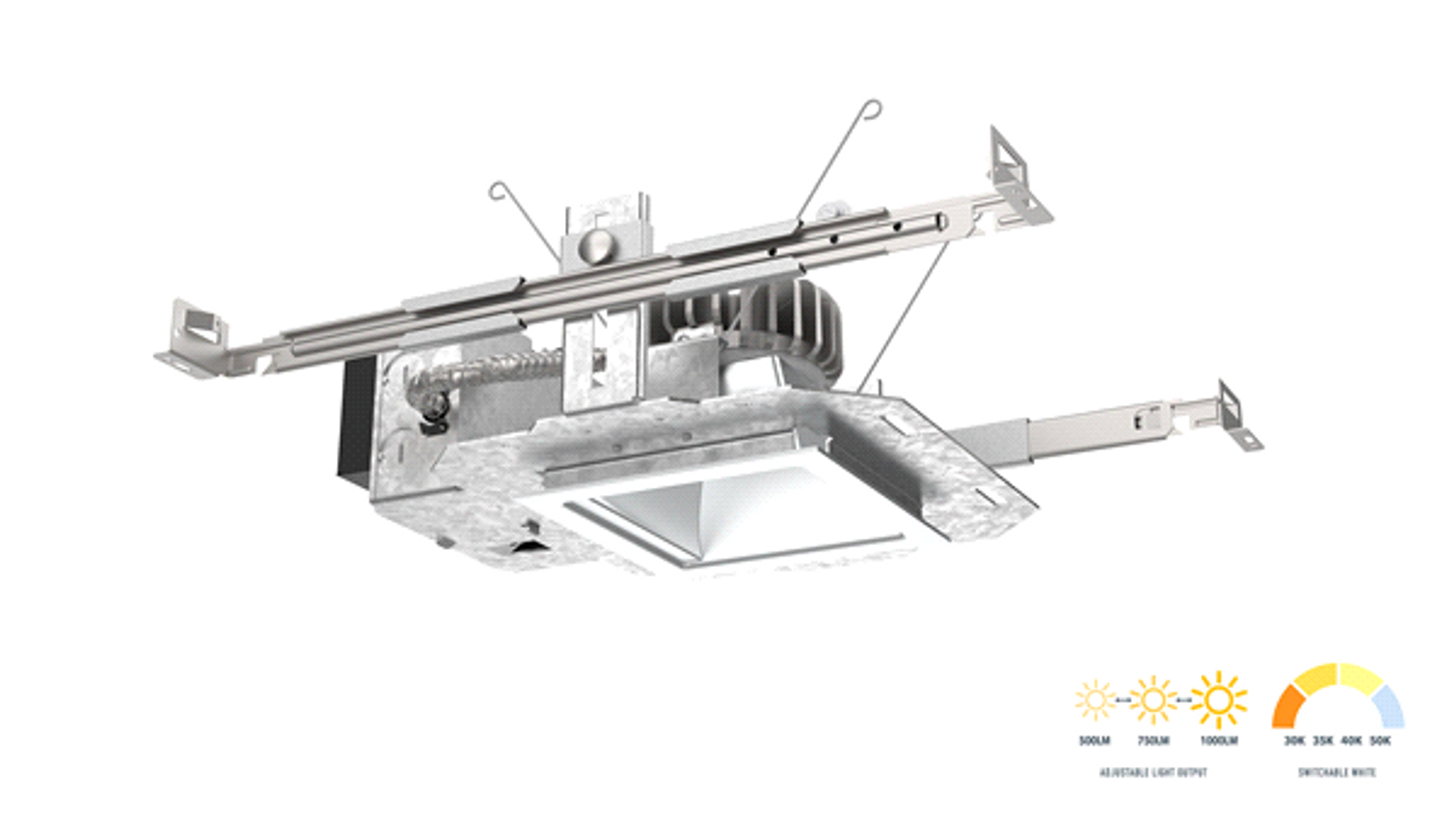 LDN 4IN Square New Construction Housing,3500K, 2,000 Lumens,Multi-Volt,eldoLED 1% Dimming Driver,Emergency battery pack; integral test switch, Housing Only