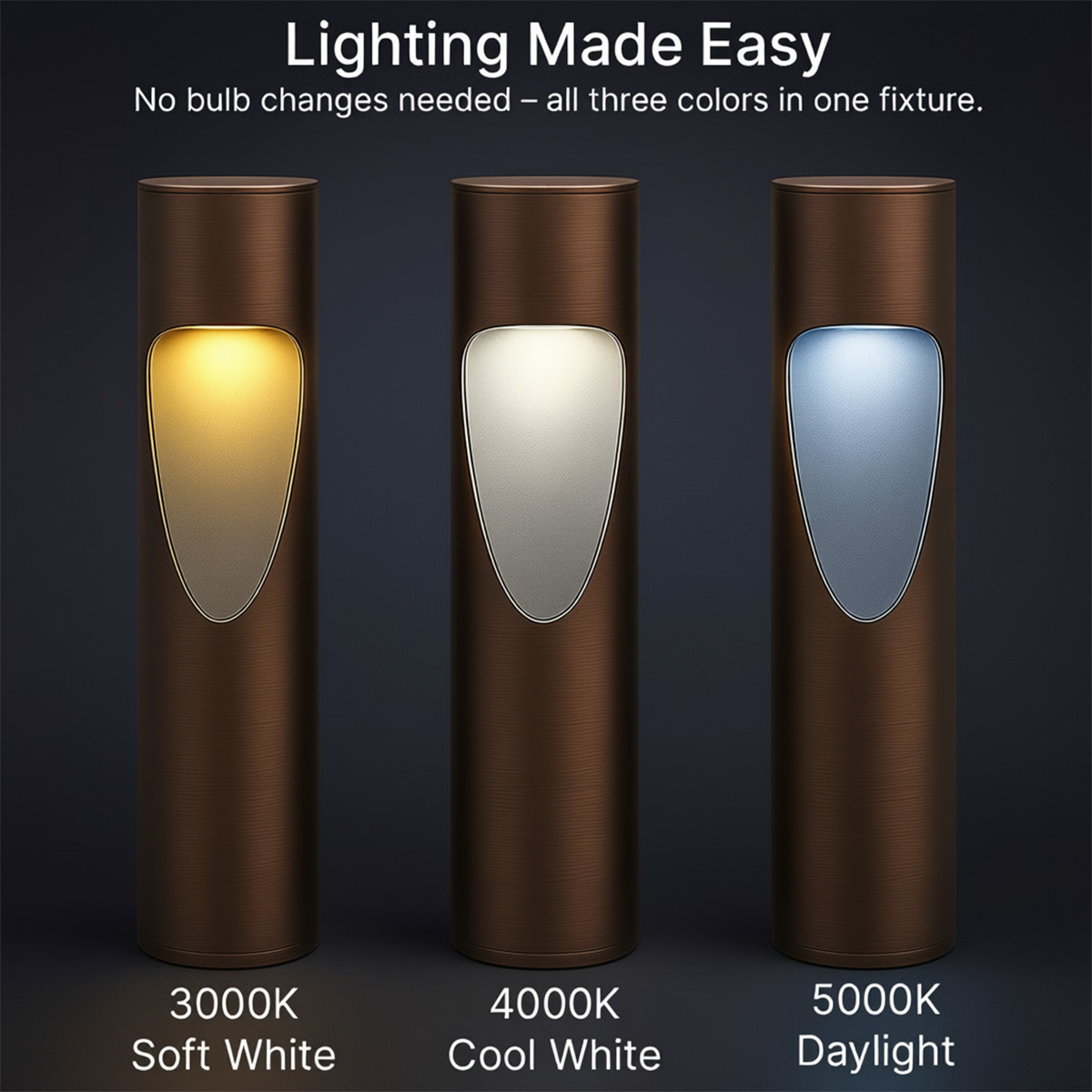 LED Garden Pathway Bollard Light - 15 Watts 1500 Lumens - Color Selectable 30K/40K/50K - 26 Inches Tall - 120-277V - Bronze Finish