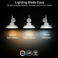 LED Outdoor Gooseneck Wall Lights - Large 40 Watts - 4800 Lumens - Color Selectable 30K/40K/50K - 120-277V - Integrated Photocell - White Finish