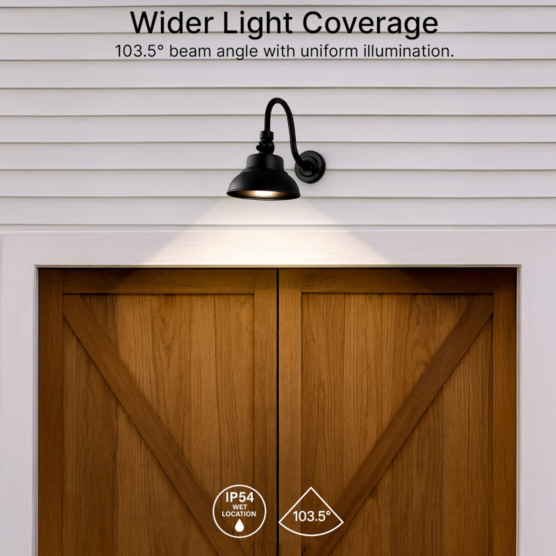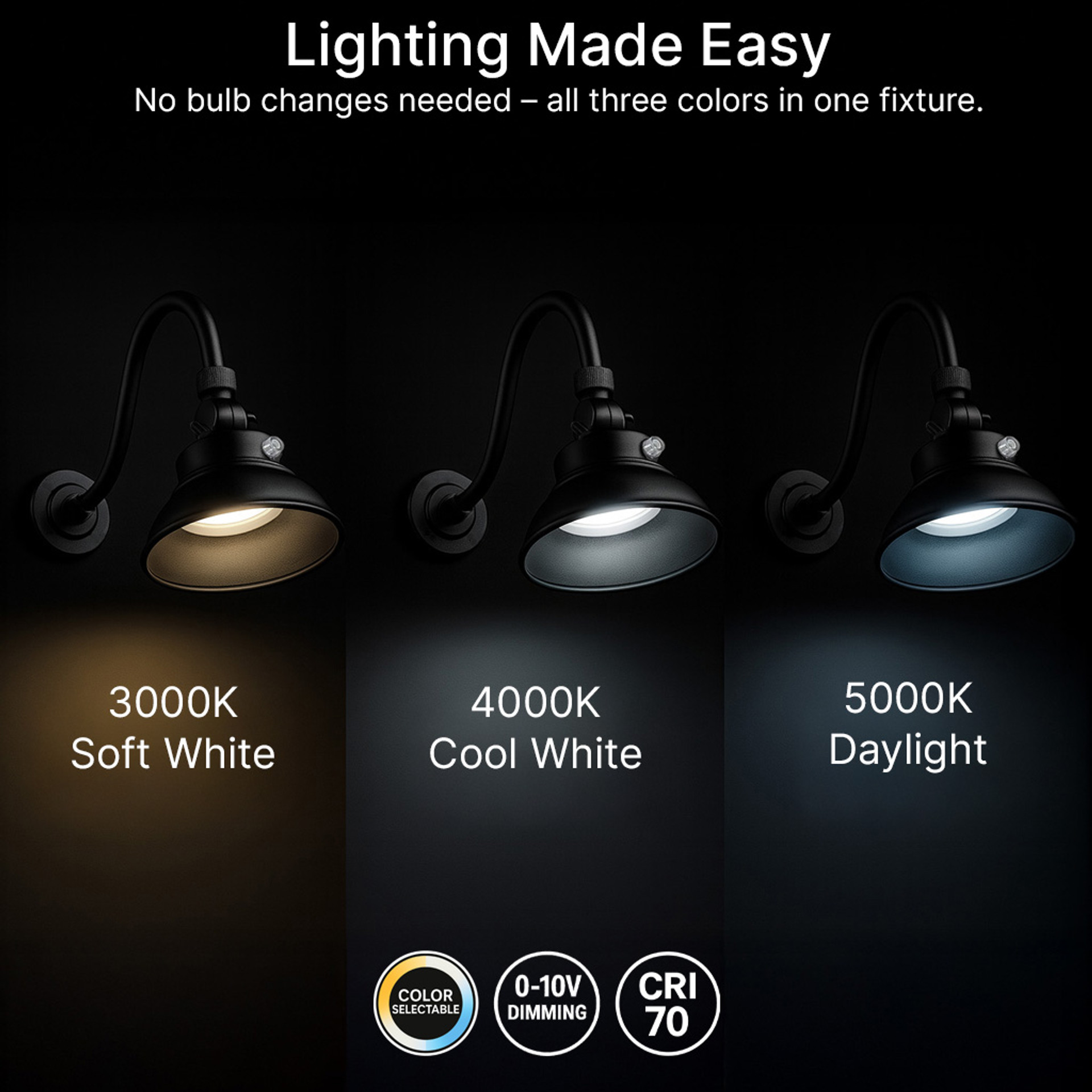 LED Outdoor Gooseneck Wall Lights - Medium 25 Watts - 3000 Lumens - Color Selectable 30K/40K/50K - 120-277V - Integrated Photocell - Black Finish