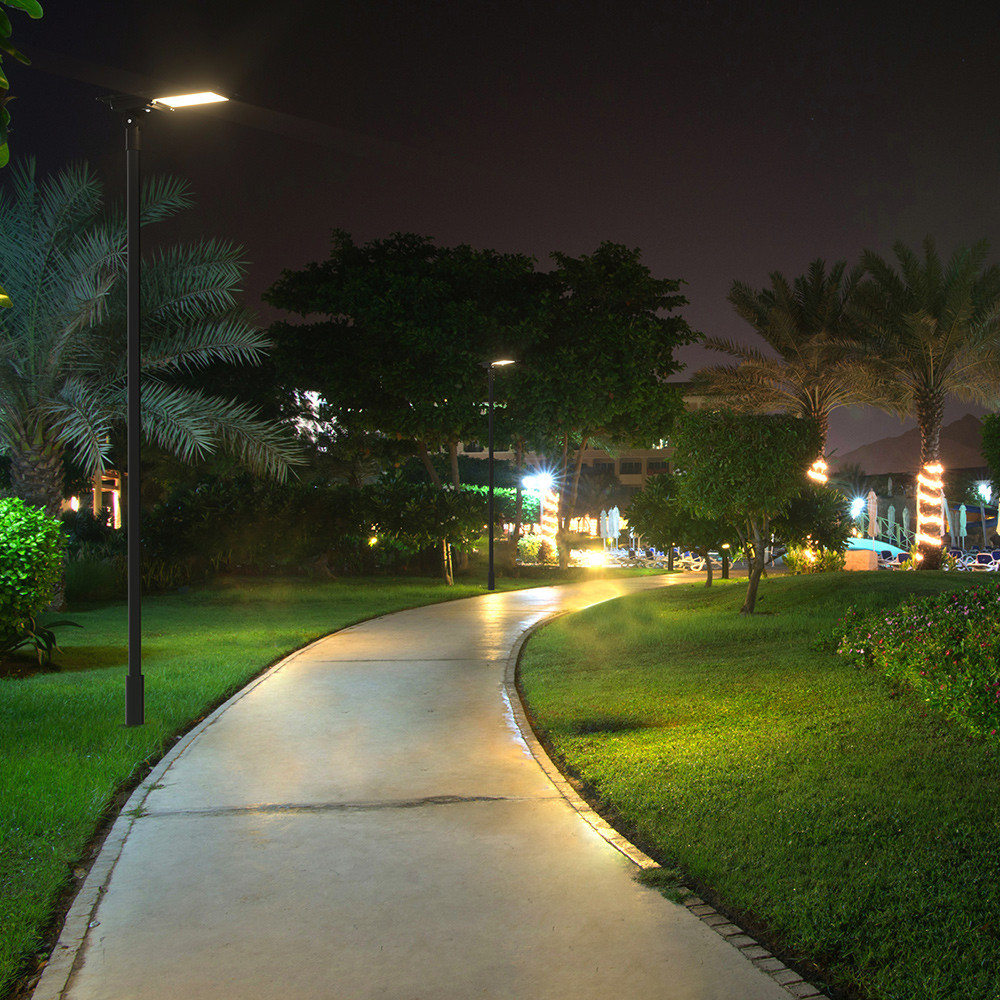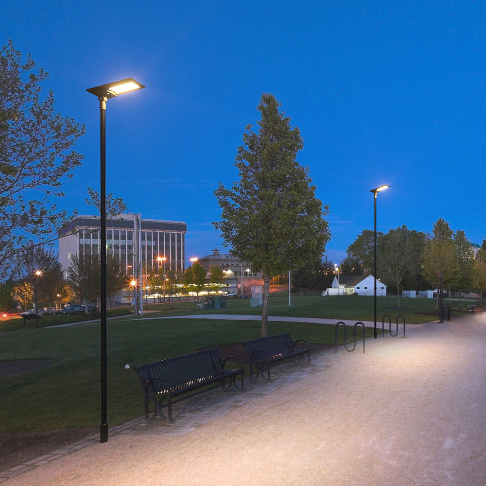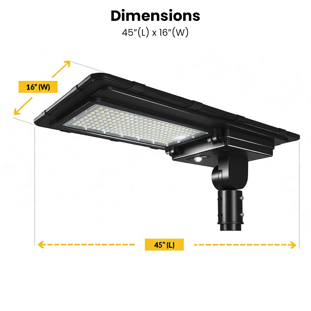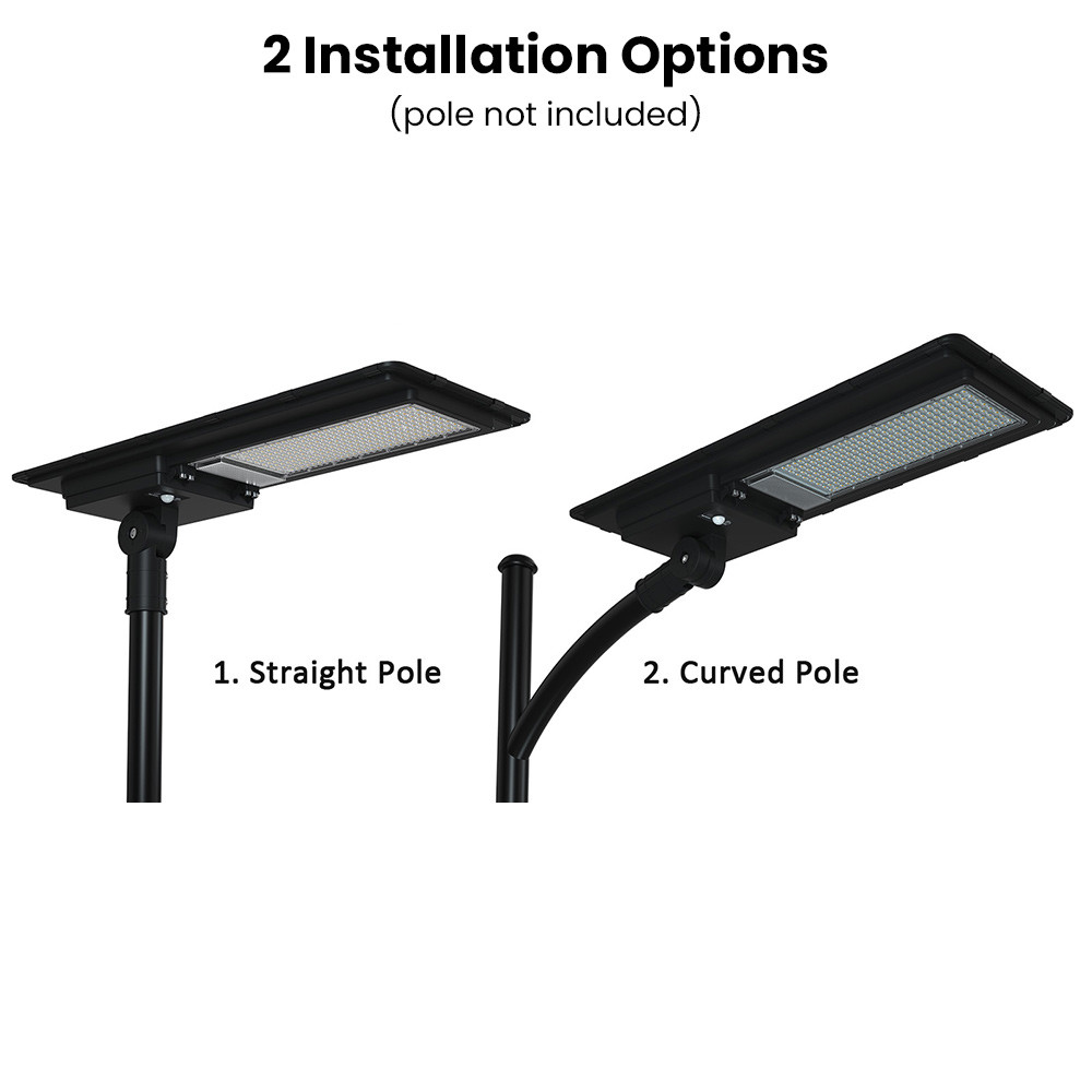 LED Solar Street Light - 80 Watt - 12000 Lumens - 6000K Daylight - Post Mount - with Programmable Motion Sensor - Black Finish