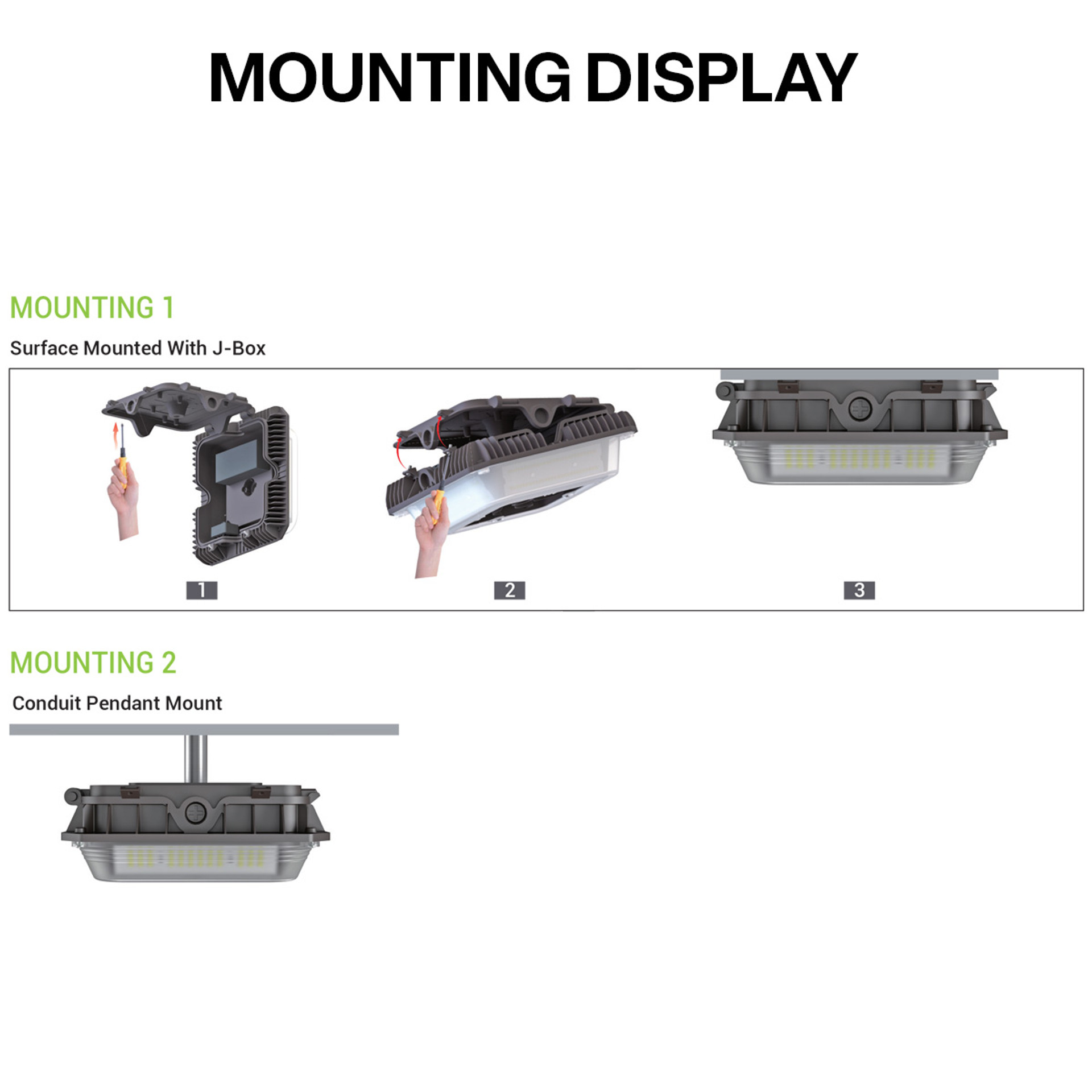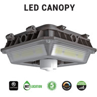 LED Wide Beam Canopy Light - Multi Watt Selectable 70/56/42/28W - 10500 Max Lumens - 120-277V - Color Temperature Selectable 30K/40K/50K - Bronze Finish
