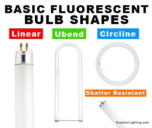You have many shapes to consider when buying a fluorescent lamp. Fluorescents often come in linear shaped tubes, bent shaped U-tubes, and circline shaped.