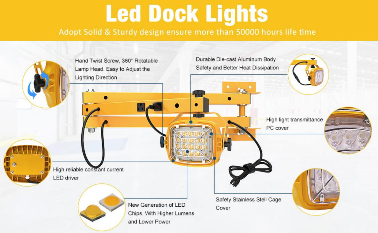 Loading Dock Light Fixtures With 60 Watt Integrated Round LED - 6600 Lumens - 6000K Daylight - Plug In 120V