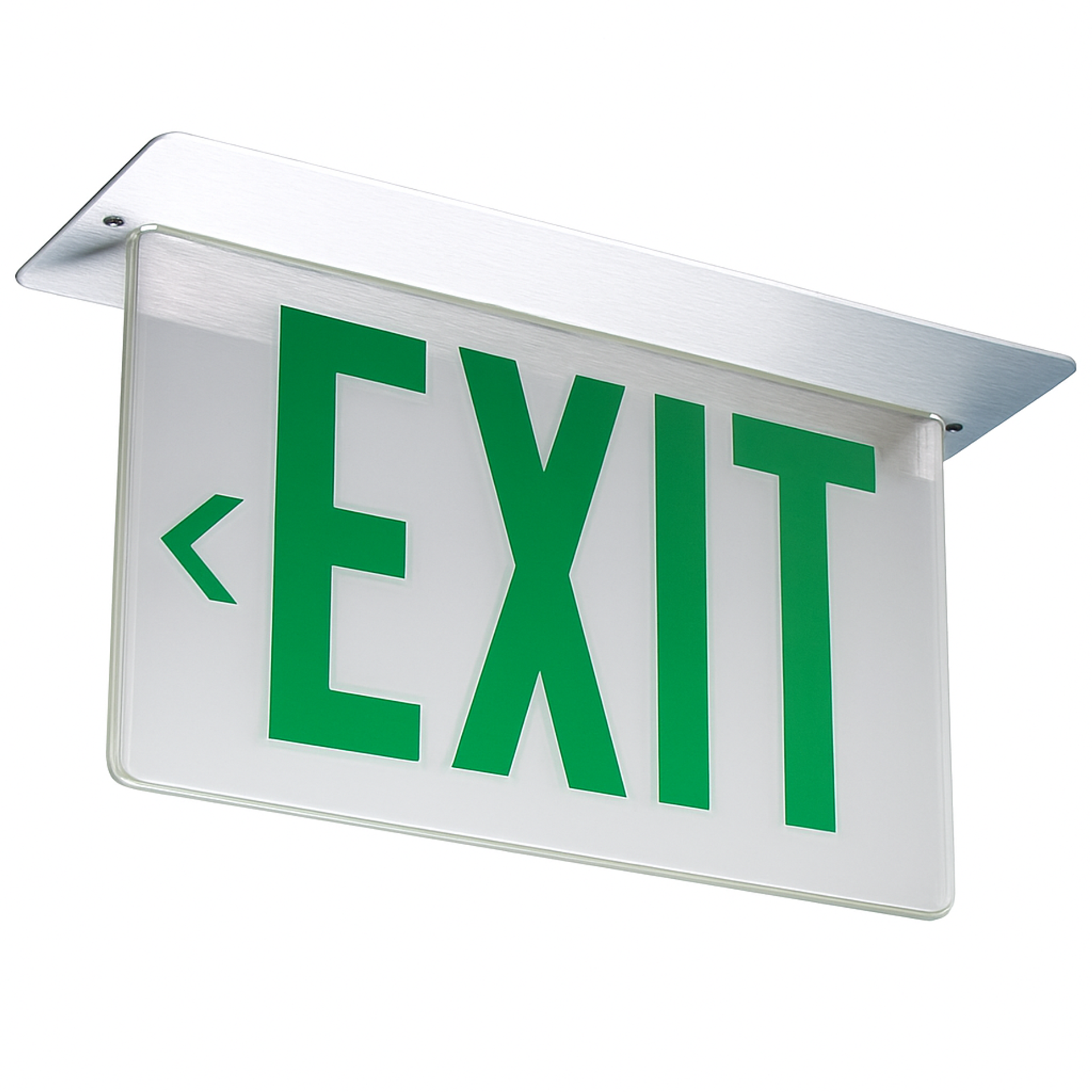 Signature®, Aluminum Edge-Lit Exit Sign, Single face, Green on clear, Left, Dual voltage, Panel assembly only