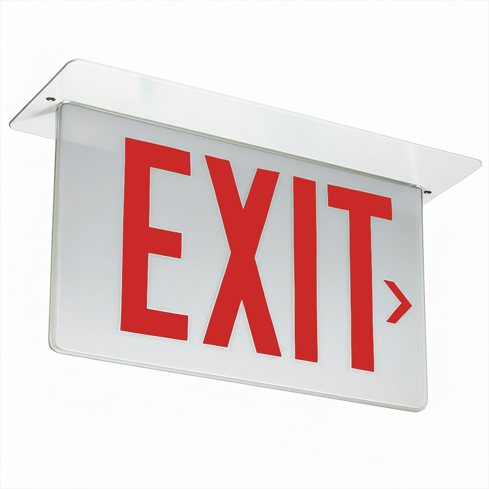 Lithonia Aluminum Edge-Lit Exit Sign, Single face, Red on white, Right, Dual voltage, AC Only - NO Emergency Battery