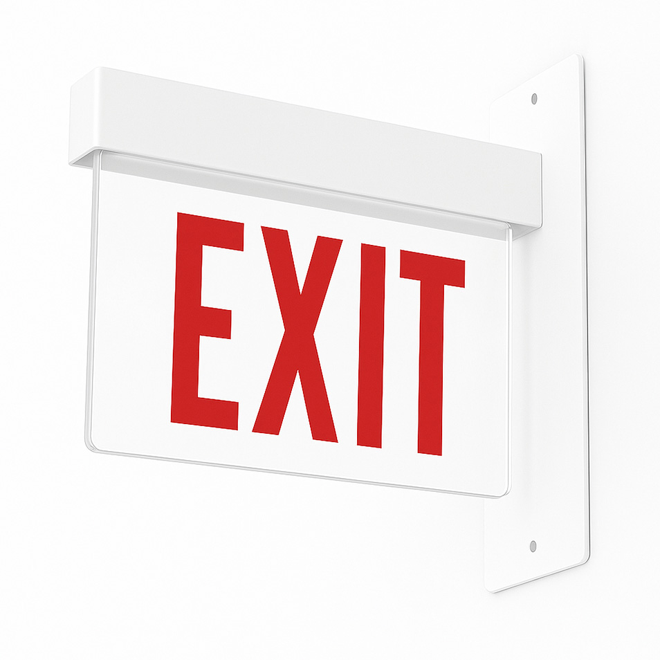 Signature®, Aluminum Edge-Lit Exit Sign, Double face, Red with mirror separator, Double face, Dual voltage, End mount, Panel assembly only