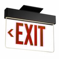 Lithonia Aluminum Edge-Lit Exit Sign, Black, Single face, Red on clear, Left, Dual voltage, Top mount, AC Only - NO Emergency Battery