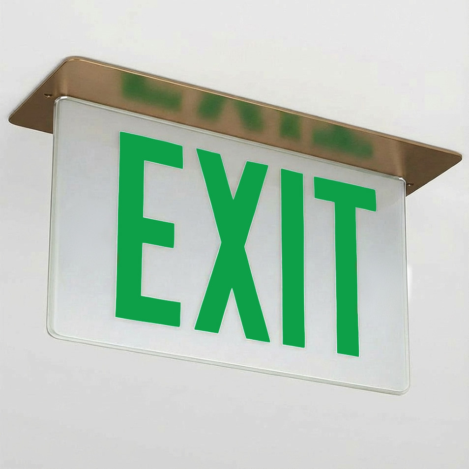 Lithonia Aluminum Edge-Lit Exit Sign, Bronze, Single face, Green with mirror separator, Dual voltage, AC Only - NO Emergency Battery