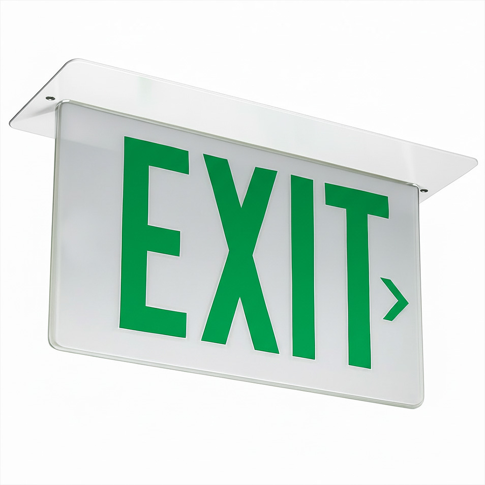 Signature®, Aluminum Edge-Lit Exit Sign, White, Single face, Green on clear, Right, Dual voltage, Panel assembly only