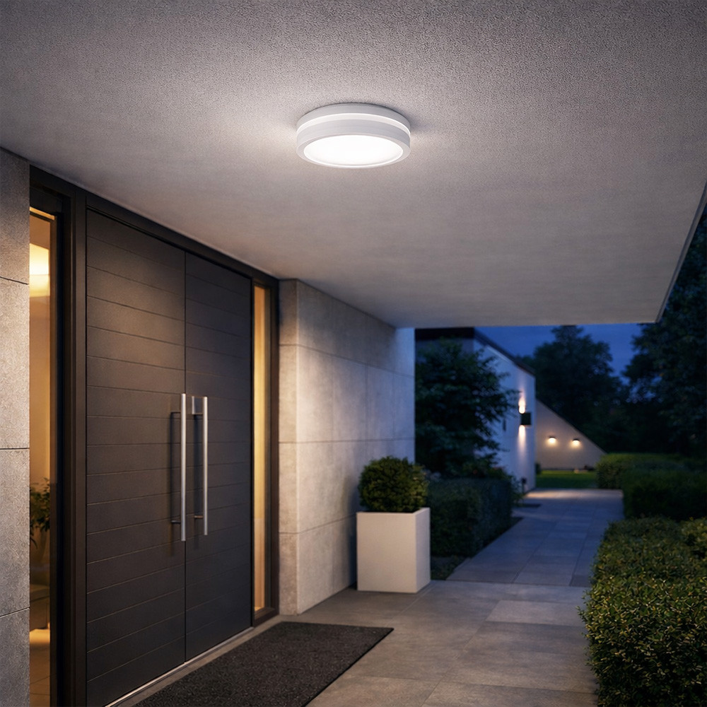 Motion Sensor LED Bulkhead Light - Ceiling or Wall Mount - Outdoor Wet Location UL Listed - 14 Watt - 1400 Lumens - 4000K - With White Finish