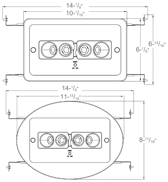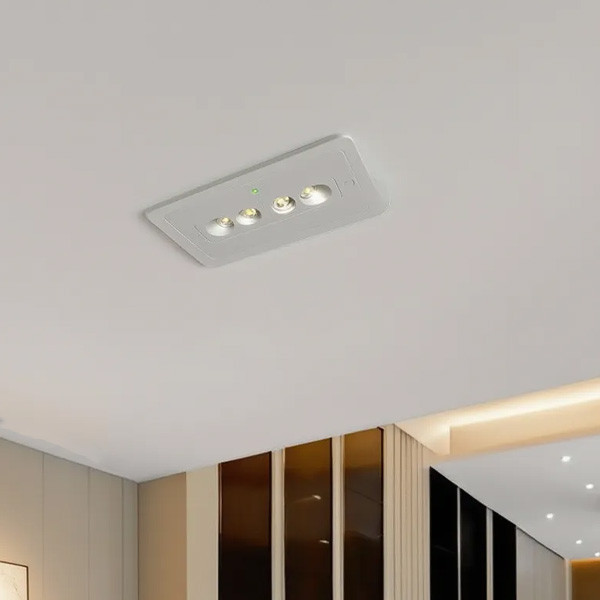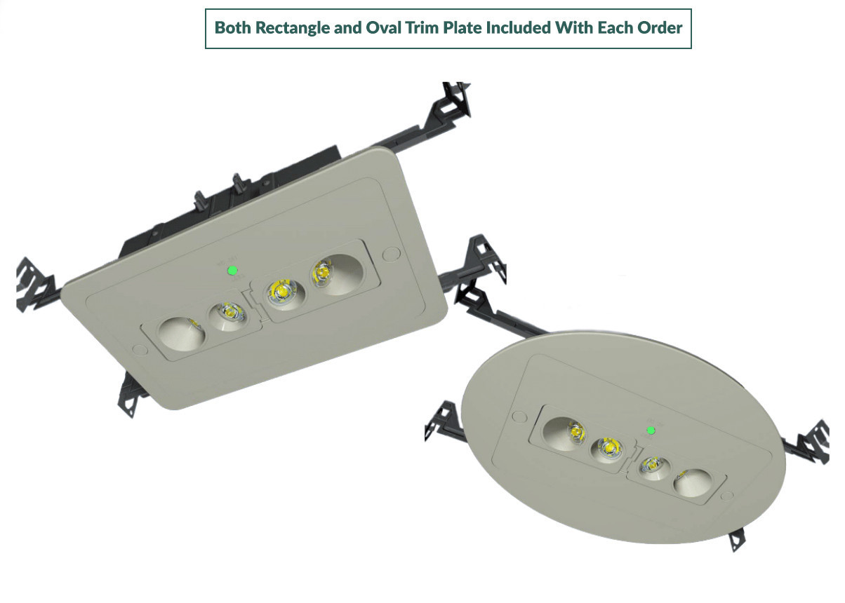 Recessed Emergency Downlight - White Finish With 90 Minute Battery Back-Up - Oval and rectangle trim plates included
