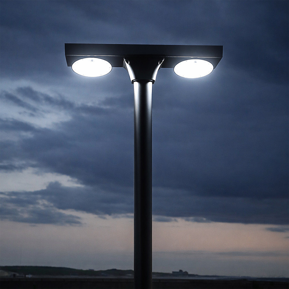 Solar LED Dual Head Post Top Light w/ Rotatable Lights - Dusk To Dawn - Remote Programmable - Extremely Bright - Commercial Grade - 40 Watt - 4800 Lumen Output - Warm White/Daylight Color Switchable