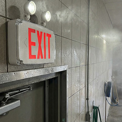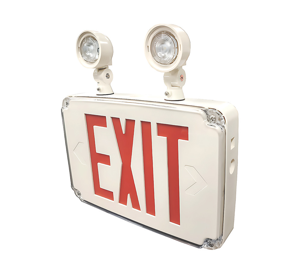 LED Wet Location Exit Combos - Exit Sign With Flood Lights - Single or Double Sided With Options for Letter Color and Finish