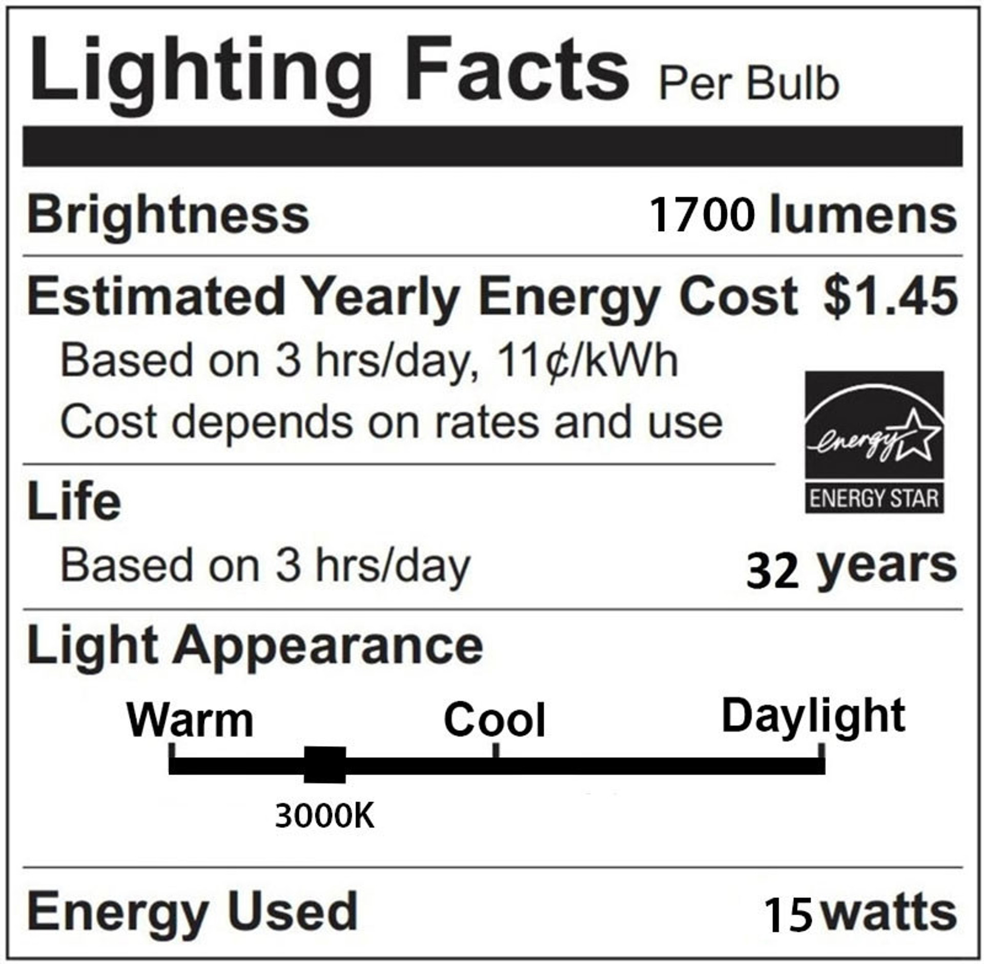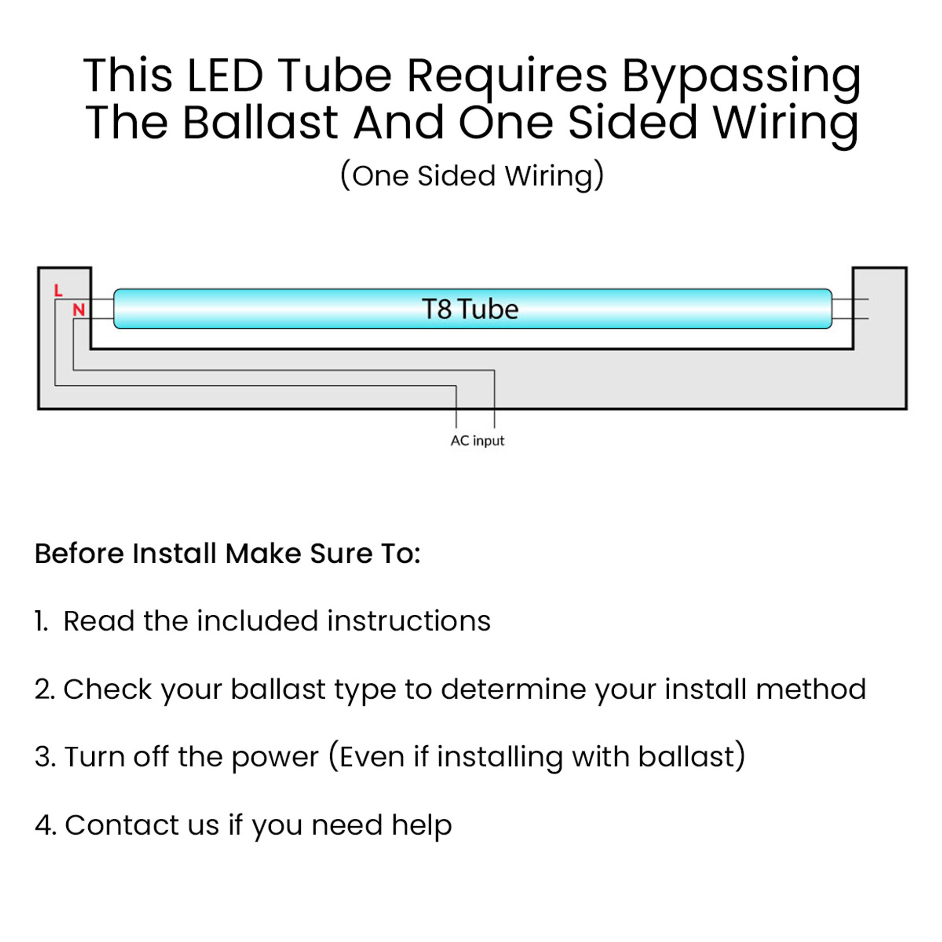 T8 LED - 15 Watt - 3000K Soft White - Ballast Bypass - Rewiring required, 50,000 average rated hours; 1700 lumens.