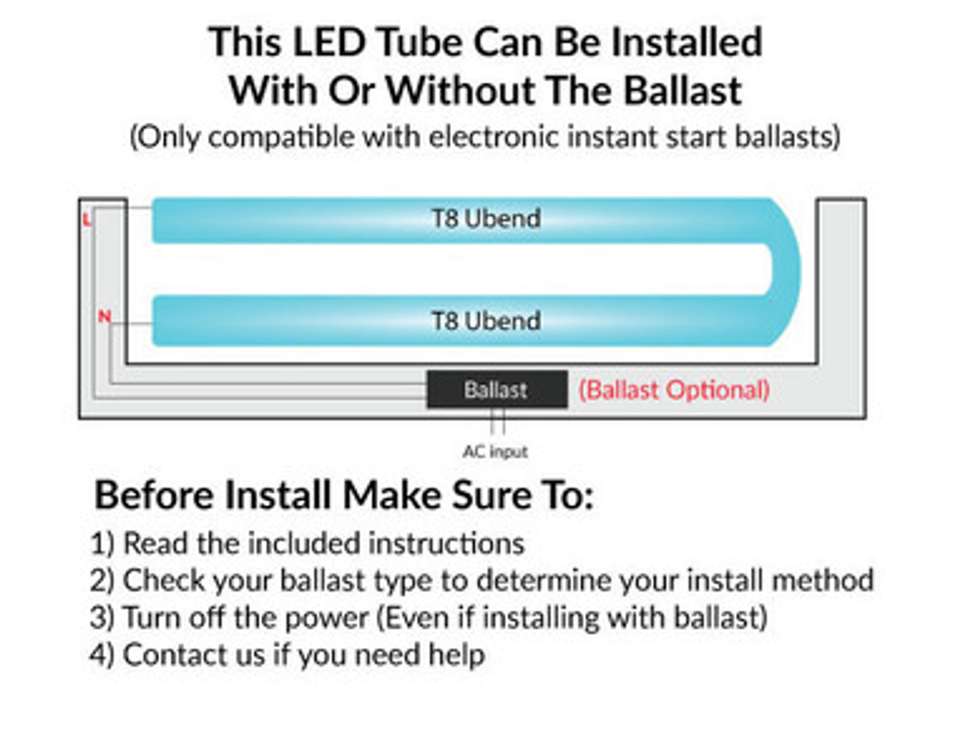 LED T8 - U-Shape Retrofit Bulb - 2 Foot - 13 Watt - 2000 Lumens - 4000K Cool White - Electronic T8 Ballast Compatible & Bypass Ballast