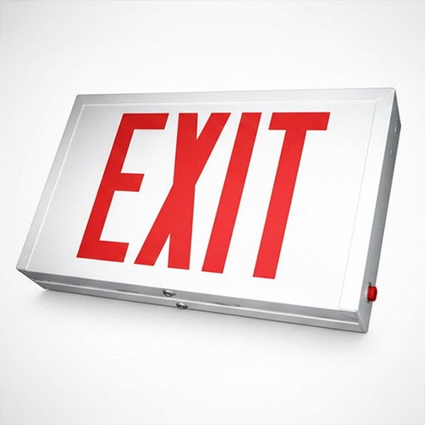 White LED Steel Housing Exit Sign w/ Battery Back Up - Red Lettering - With Battery Back-Up